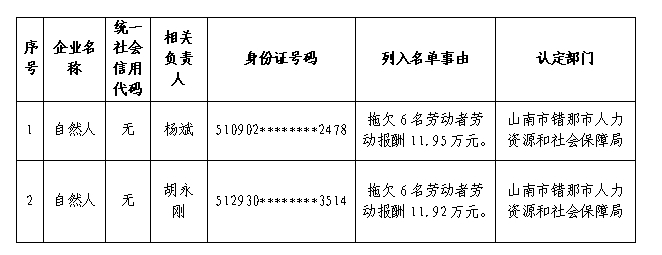 附:《2024年度山南市拖欠农民工工资失信联合惩戒对象名单》